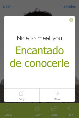 - Build your FAVORITES list to quickly access the Spanish phrases and expressions you want to learn or translate