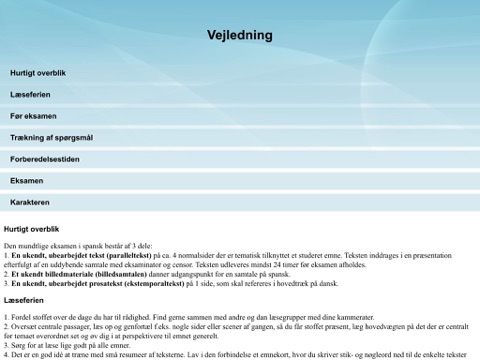 - En fyldig beskrivelse af hvordan du bl.a. skal strukturere din spanskeksamen