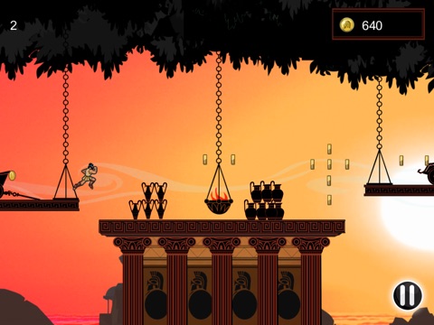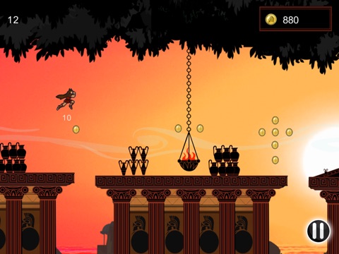 The objective is to run the equivalent of the marathon, having different character to choose from like a spartan warrior or the greek runner. The objective is to jump on the roofs of a greek town, avoiding the fire pots.