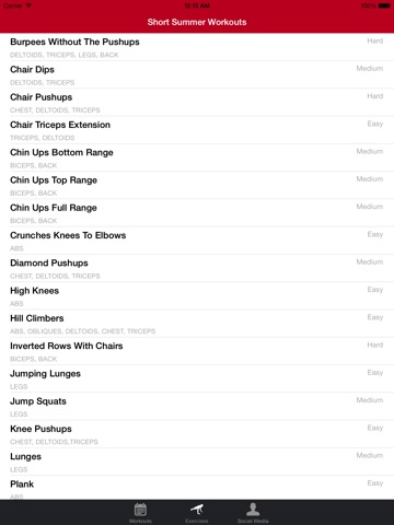 Short Summer Workouts offers many different workout types (BBG, HIIT, high intensity, beginner, intermediate, advanced, etc.) each of which displays the intensity level of the workout.