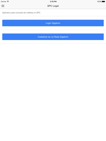 App de consulta de crédito de SPC. Login integrado com o portal de franquias Gigatron e o site de gerenciamento de créditos e pagamento gigapay.