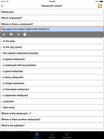 → Use or listen to over 16,000 PHRASES with the following options: Listen to the audio phrase / Display it on full screen / Store it to your Favorites / Copy & Paste the phrase in order to send it by email or by text.