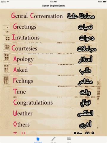 عن طريق قراءة الجمل باللغه الإنجليزيه مع الترجمة الى العربيه والاستماع اليها بنفس الوقت بالإضافة الى اختبار يقيس مستواك عن طريق السمع والتمييز ومعرفة المعنى الصحيح للجملة المسموعه . البرنامج لايحتاج الى انترنت.