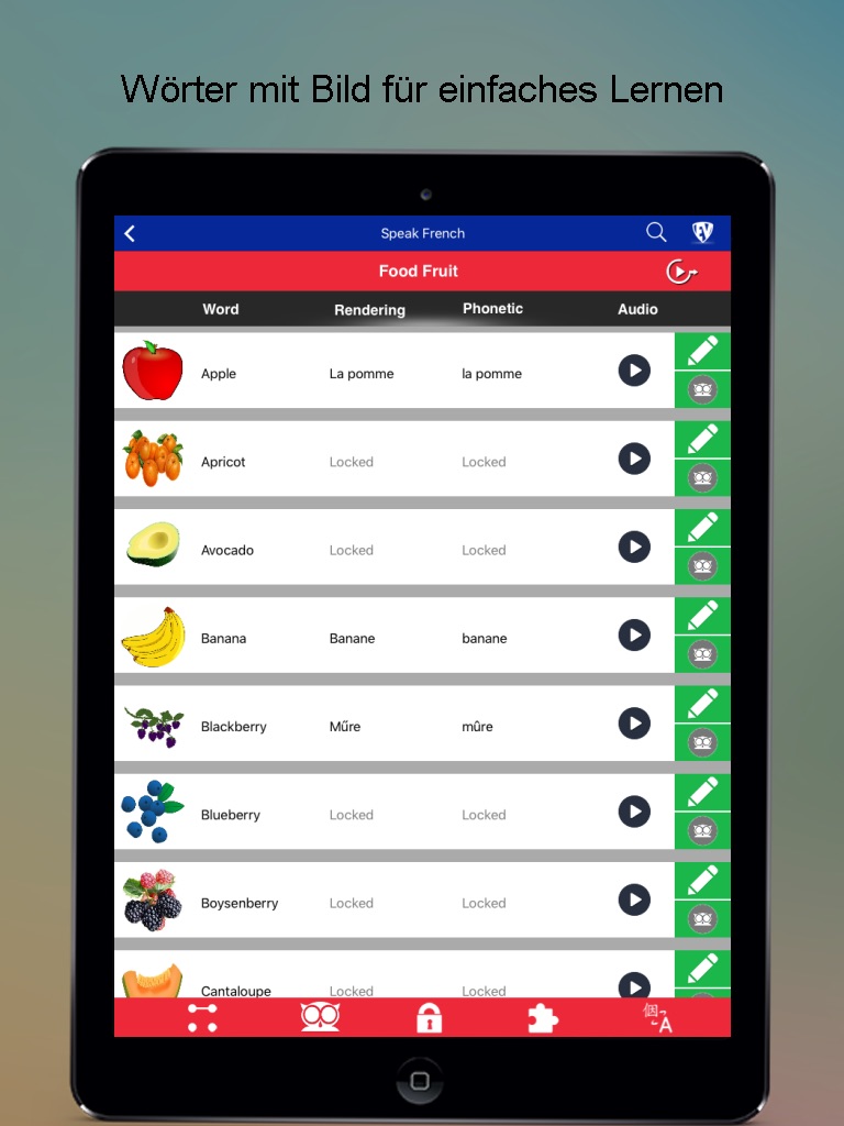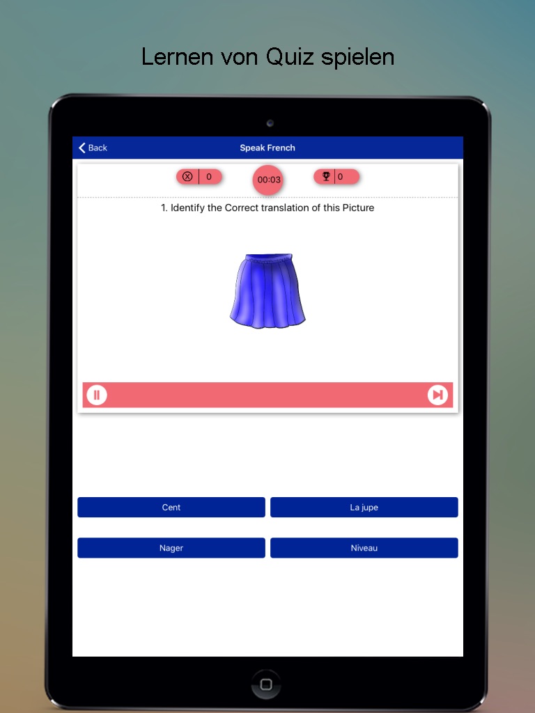 Speak French app with more than 2000 words in 55 categories like Food, Clothes, Numbers, Travel, Emergency, Health etc. is here to support you in French Language Learning. Our visual senses help us recall things easily, so this Learn French app is full of word images and audios for SMART learning. To be more interactive, this Learn French app contains different types of games.