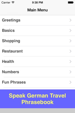 Great for travel or study! Speak German Travel Phrasebook Lite is an easy to use talking phrasebook app for the German language. Each phrase is displayed in German and English translation. Hear the audio for each phrase in a clear, pleasant voice from a native German speaker. This free version of the app contains dozens of useful words and phrases in the following categories: