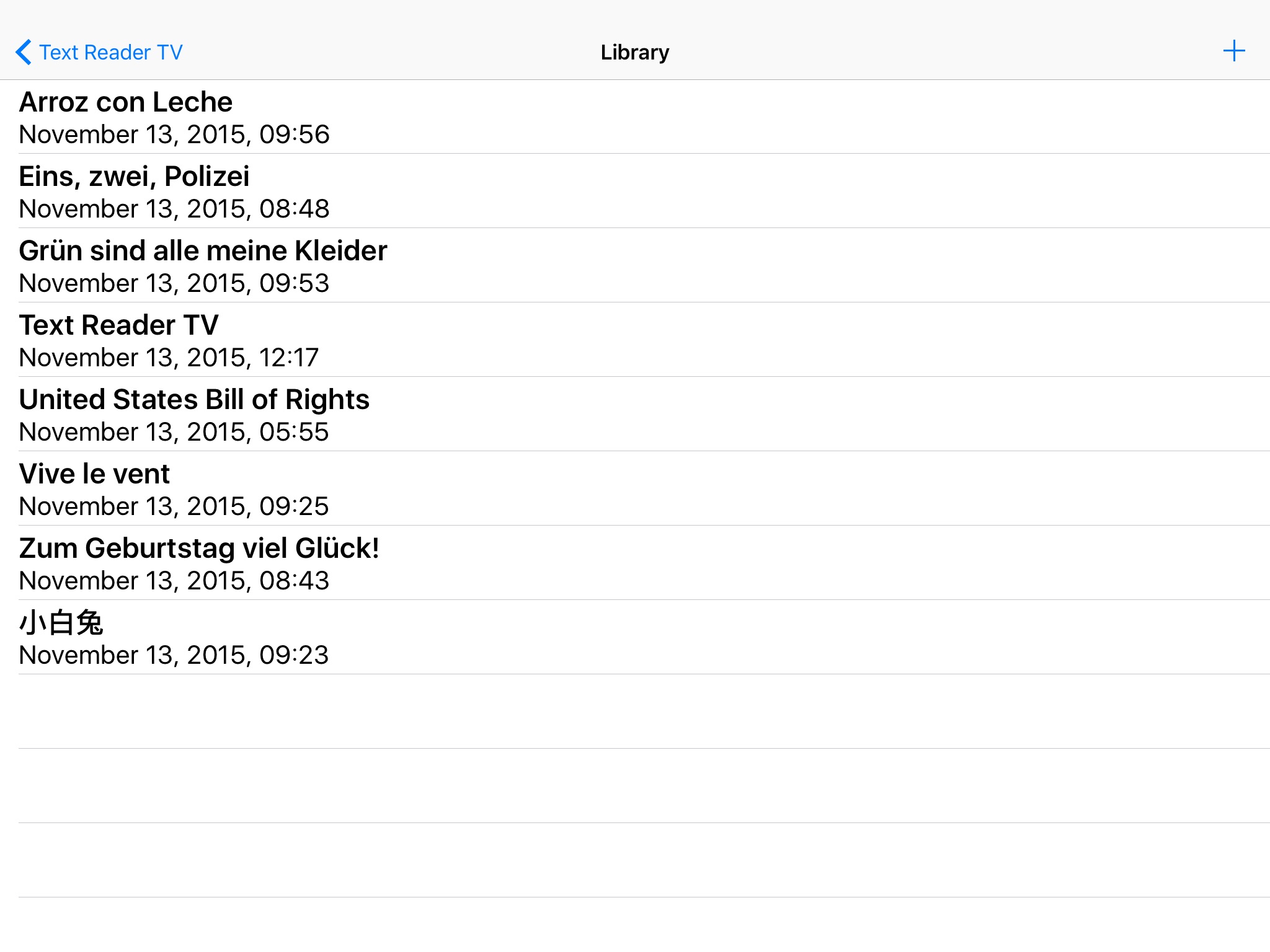 Add new Text Reader documents to your iCloud Library using the Bookmarks icon button.