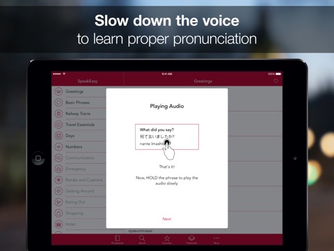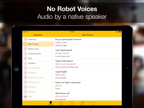 • Hundreds of essential travel phrases with easy-to-read phonetic translations and native speaker audio.