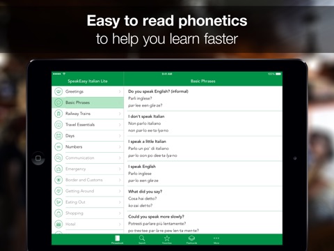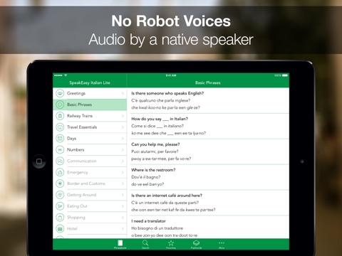 • 160 essential travel phrases with both Italian and phonetic translations plus audio. Over 1,000 phrases are available in the Complete Edition.