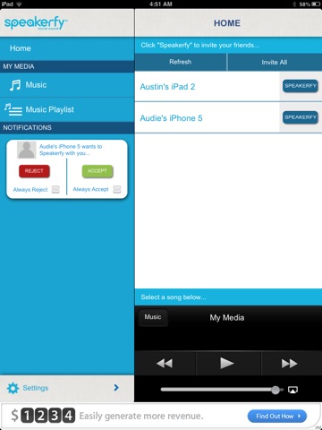 Speakerfy uses our very own Proximity Platform which creates a whole new way to ‘socialize sound’ anytime, anywhere between any mobile device including notebooks, smartphones and tablets.