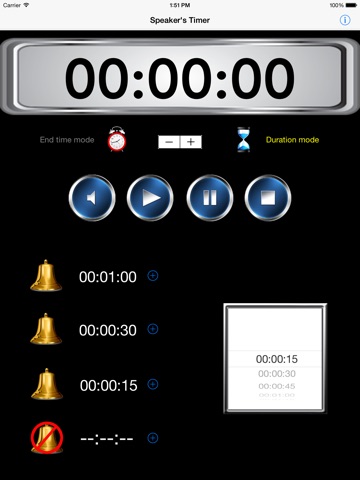 Download this simple app so that the impact of your words is the only thing your listeners take away from the lecture or speech. Set the timer so that your talk concludes at a specific time, or set it so that it concludes after a specific duration.
