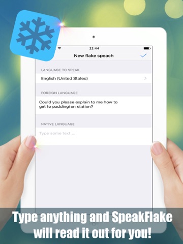 The concept of SpeakFlake is simple, you can write any text or speak or hand write and translate it to any other language . there are many languages available to translate.