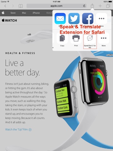 A must have app to speak aloud & translate text, documents and web pages of Safari.