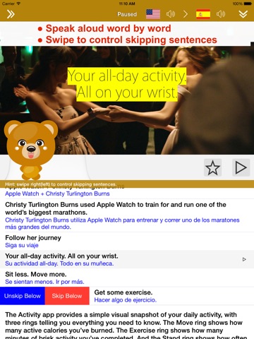 ● Swipe to control skipping sentences