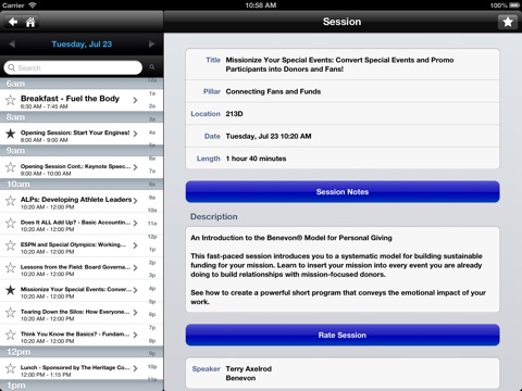 Exclusively for registered attendees of the 2013 Special Olympics North America Conference. July 22-26, 2013. Charlotte, North Carolina, USA. This app will be your guide to the SONA Conference: get session and speaker info, maps of the venue and activities, special messages, alerts and updates, session presentations and handouts, exclusive news, special offers, fun content, and more! This conference will not offer a printed program or session guide – attendees must use this app to access all conference information and materials. Information regarding the conference will be sent to attendees prior to, during, and after the conference via this app, so add it to your smart phone or mobile device prior to arriving at the conference!