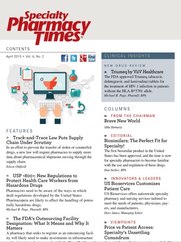 Specialty Pharmacy Times is focused on the many key areas surrounding specialty pharmaceuticals and the enhanced practice needs of pharmacists and other key ancillary personnel. Specialty Pharmacy Times’ content is directed in all of the key areas necessary for its readers to stay abreast of the practice of specialty pharmacy. Articles are focused on the actions practitioners must undertake to succeed in this business, including product selection, infrastructure, staffing, pharmacy design, reimbursement, customer service and order management, and marketing and sales, and will also include several clinical programs.