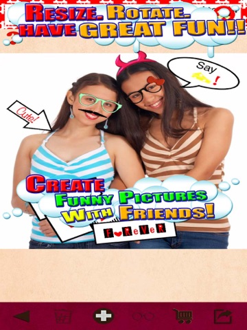 Spectacular gives you lots of props like Vintage Spectacles, Text (Personalise your photos), Speech for ultimate fun and mustache to make you look funny ;)