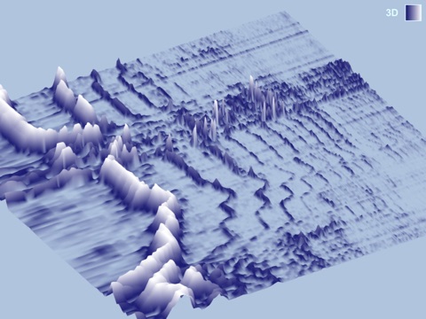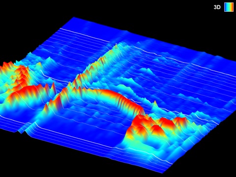 The Spectrograph displays and records real time spectrograms (visual representations of the spectral density over time) by processing the audio signal from the microphone input (or any external microphone connected to the input jack) or any digital audio input via the dock connector (if suitable external hardware is connected). It offers a 2D view and an amazing 360 degrees fullscreen 3D view.