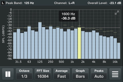 Вылетает при переключении между программами, невозможно работать. Very good analyzer!! but... Dropouts!!! When working with mixer remote and switching between this analyzer and mixer remote program, analyzer didnt show up!!! Some times it does some times not, and its not workable situation while working on life stage. It takes about 5-10 times to try to turn it on. I have ipad 5 air, iOS 7.0.2 during the 5 month no updates!