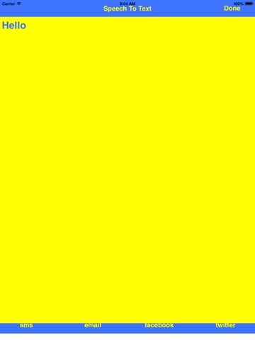 This application will convert your Speech into Text. And then you can share your Speech through Email, SMS, Facebook and Twitter.