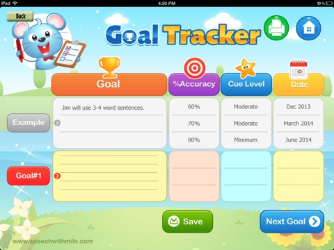 * Milo’s Goal Tracker allows you to organize and track goals for an unlimited number of children.