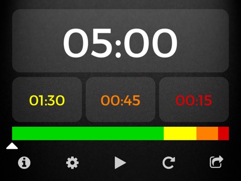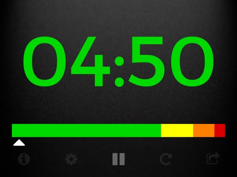 A timeline shows you where you are in your speech at a glance. It includes a moving indicator, and colored bars to show the position of the warning sections. Time is displayed in the default HH:MM:SS format, or in a more readable minutes or seconds format. Can be used in count down (default) and count up modes.