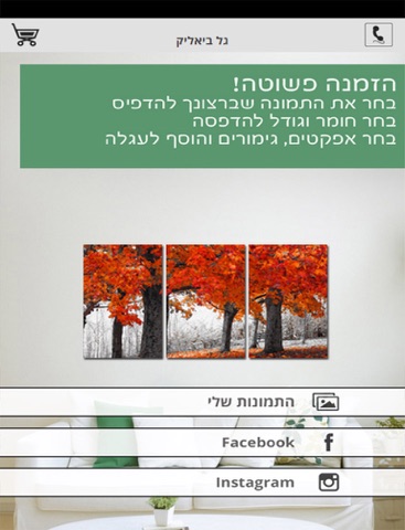 הדפסת קנבס ופוסטר באיכות גבוהה במידות שונות המוגדרות באפליקציה ובמגוון