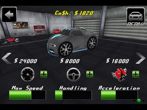 UPGRADE YOUR CARS from 3 upgrades available: MAX SPEED, HANDLING and ACCELERATION