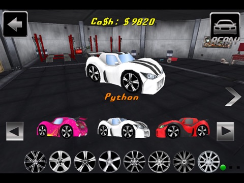 BUY and CUSTOMIZE your cars from a list of 9 UNIQUE MODELS with 3 PAINT JOBS each and 8 different RIMS!