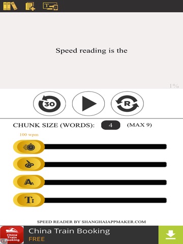 Speed Reader HD can be used as a tool to learn how to read faster by suppressing your subvocalization, or just as an utility to read articles or books faster.