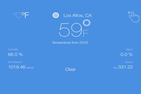The Weather Section gives all relevant weather data for the current location such as temperature (ºC or ºF), air pressure, humidity, precipitation, ozone and a resume description with an weather icon depend on the conditions.
