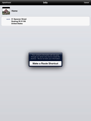 SpeedTouch allows you to add shortcuts to your home screen for phone calls, text messages, emails, video chats, twitter queries, map destinations, and any other URL scheme (not all types are available on all devices).