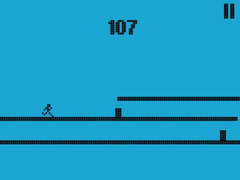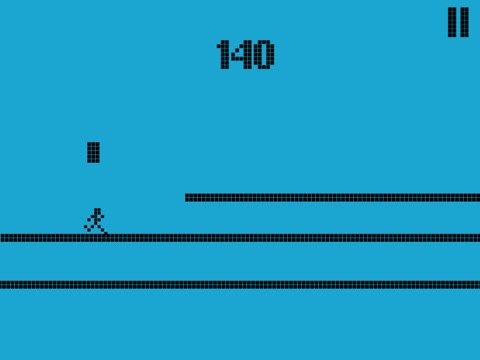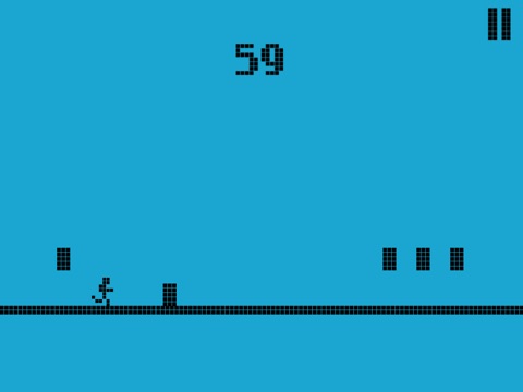 This retro runner is on his survival route in this blue period. The gameplay is fast paced and really a challenging one. He has to quickly jump over the obstacles as fast and as far as he can in this endless run.