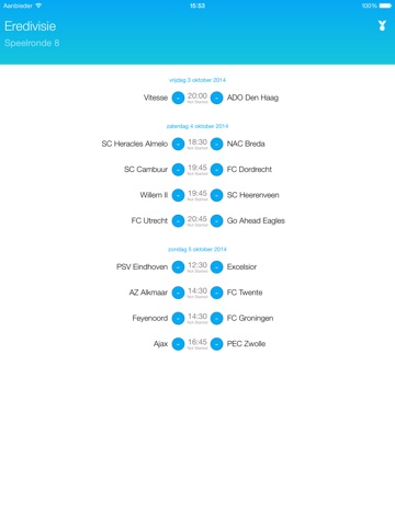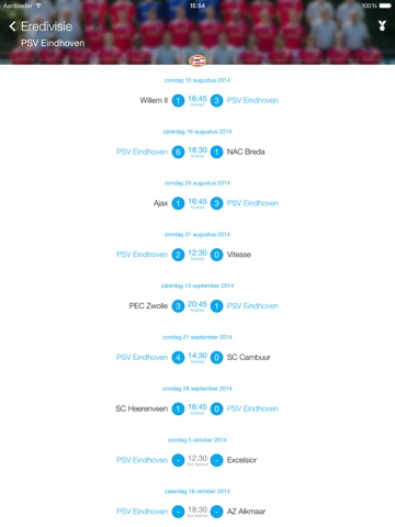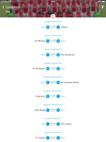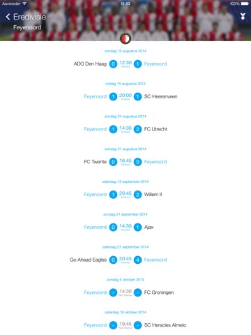 Een helder compleet overzicht van het programma van de Eredivisie 2014-2015. Zowel per ronde als per team te bekijken. Daarnaast ook de huidige stand in de Eredivisie.