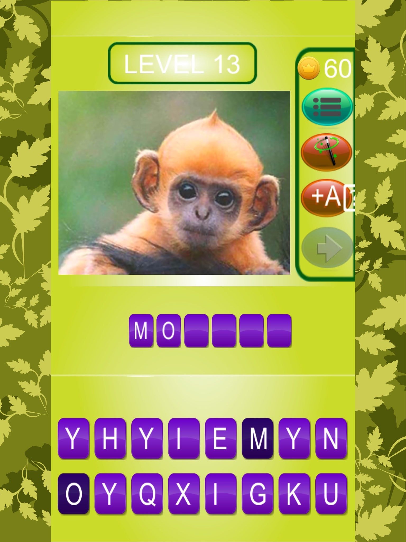 Spell Animal Name Quiz is very good memory game. It does Not only help you Learn about the different types of Animals around the world but you can learn to spell them correctly and memories them. Identify the animal name and spell it right to go to the next level. This game is good for kids to help in their learning and Knowledge. Have fun Playing "Animal Name Quiz" game.