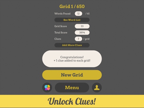 I wish that words could be phased! Like a ranking where is not possible to do same words every time! Takes to long to complete 500 words! Its great to stimulate your vocabulary and learn from mistakes but in any way is possible to form longer words duo the size that fit the letters.