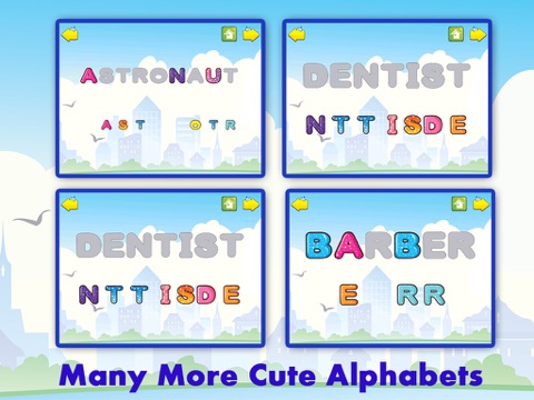 Let your toddlers learn spelling and their ABCs with Kids Spell & Learn : Occupations! Spell & Learn is a series of toddler games themed for children aged one to four. Spell & Learn uses common objects, items or animals to help your child learn their alphabet and spell better.