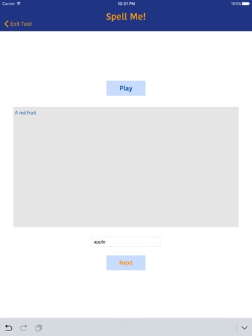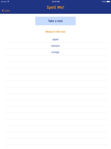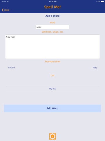 Get prepared for any spelling bee! You can add words, make lists, and practice! Adding words includes definition, origin, pronunciation, and more features! Make as many lists as you need to become the best speller. After you have created a list with words, you can practice with a nice interface, get your score, and then practice off of your mistakes. All your correct and incorrect mistakes can be seen too, so you can prepare to the best! Enjoy, and we hope you win your next spelling bee!