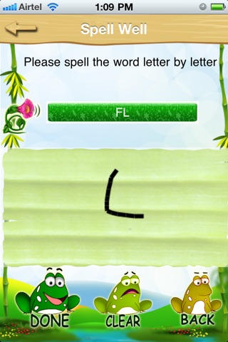 The spelling of the words is done by writing directly on the screen, so the child will actually have to write perfectly to proceed.
