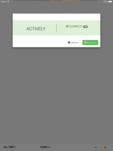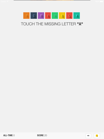 A random word from the top 10,000 according to Google, will display on the screen. Two letters will be hidden and you are asked to touch the one that contains the missing letter.
