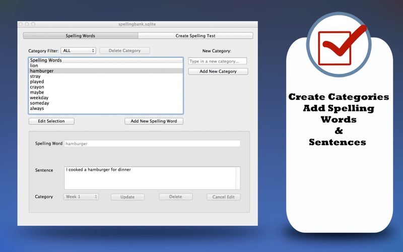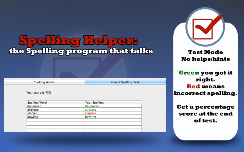 The Spelling Helper application is designed for youth in order to help them prepare themselves for their next spelling test. The program uses the built in computer synthetic voice in order to read the words to the person getting the test.