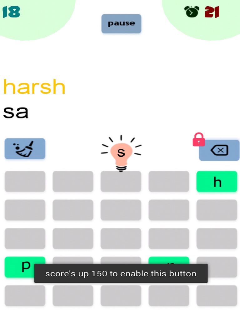 -Score 150 in normal game mode for enable Backspace button.