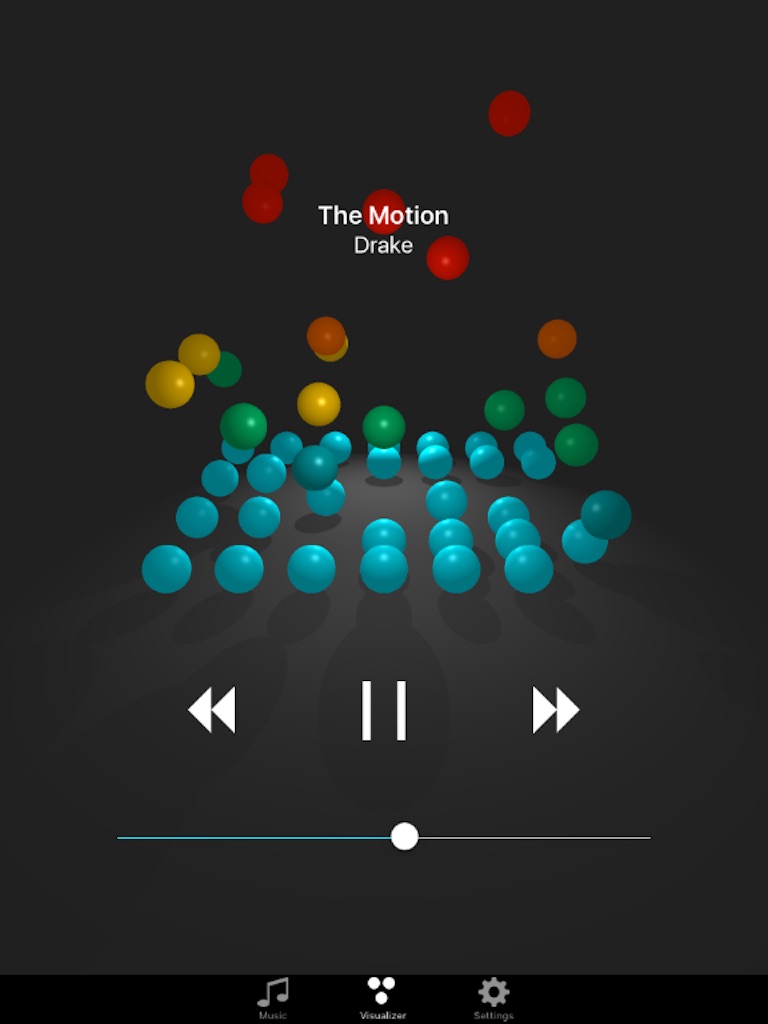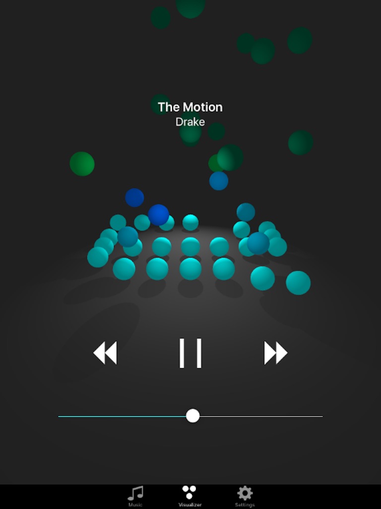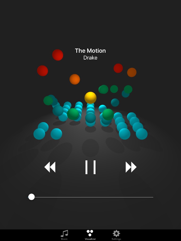 In the Sphaudio visualizer application, audio waveform data is mapped to spherical balls. Each ball corresponds to a specific frequency range and bounces up and down according to the average amplitude of the nodes sampled in their corresponding frequency ranges.