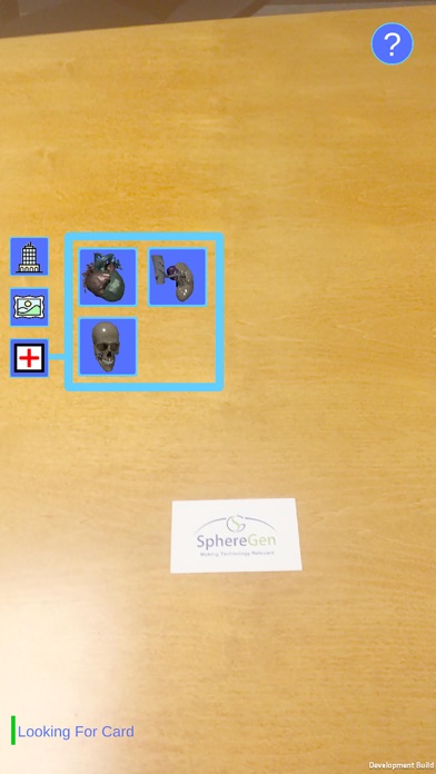 This application generates a variety of 3D Augmented Reality models that are placed based on the position of a SphereGen business card.