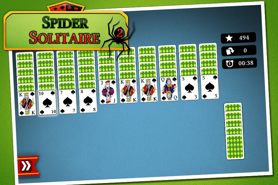 The goal of Spider Solitaire 2 remains the same which is to remove all cards from the table, assembling them in the tableau by color, from Ace to King.