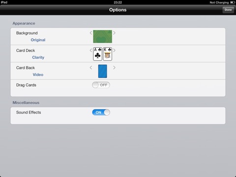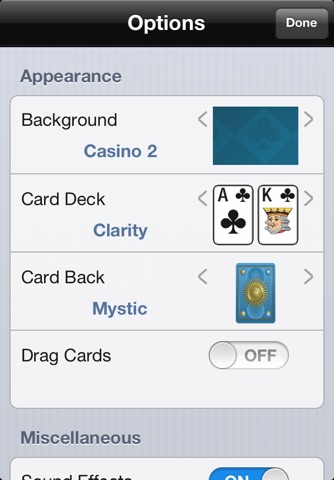 Choice of Card Decks and backgrounds.