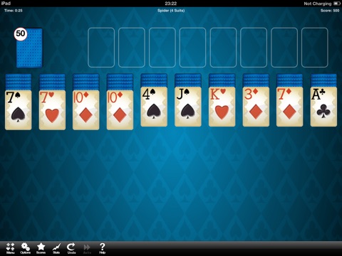 A fab completely free version of your favorite Spider Solitaire game! Universal app! Includes one, two and four suit varieties.