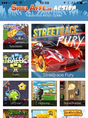 In der neuen SpielAffe-App Action & Rennspiele geht es richtig zur Sache. Euch erwarten hier 12 spannungsgeladene Spiele von Deutschlands größter Spieleseite, welche garantiert keine Langeweile aufkommen lassen.