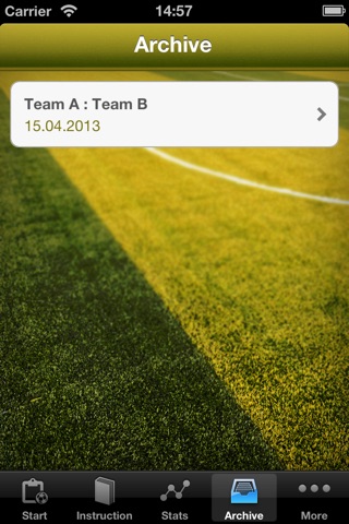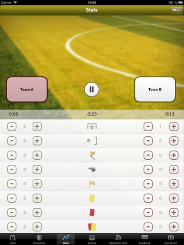 Within the App you can save statistical characteristics such as goals, corners, fouls, offside, yellow and red cards by clicking on the corresponding symbol.