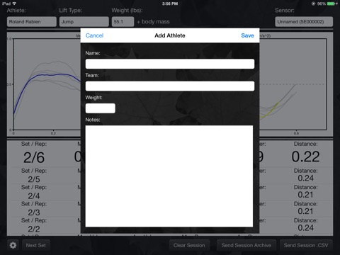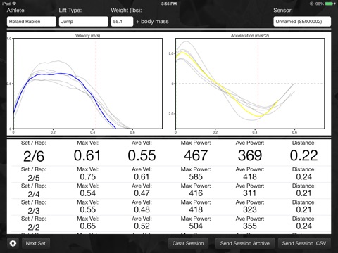 Monitor the power, speed, acceleration and distance of your lifts. Graph curves and get peak values. Requires MMS Sensor and Wahoo ANT Dongle.