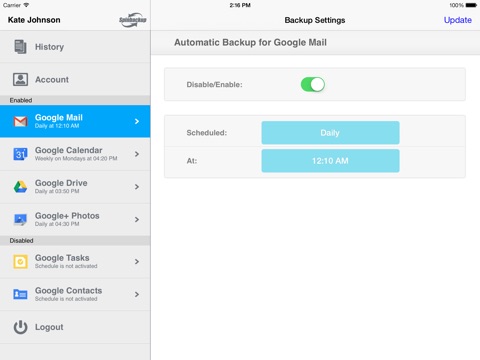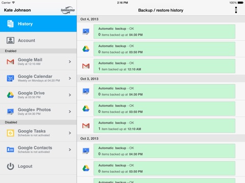 Spinbackup provides Gmail backup, Google Drive backup, Google Calendar backup, Google Contacts backup, Google+ photos backup, Google Tasks backup in the Cloud and disaster recovery services.